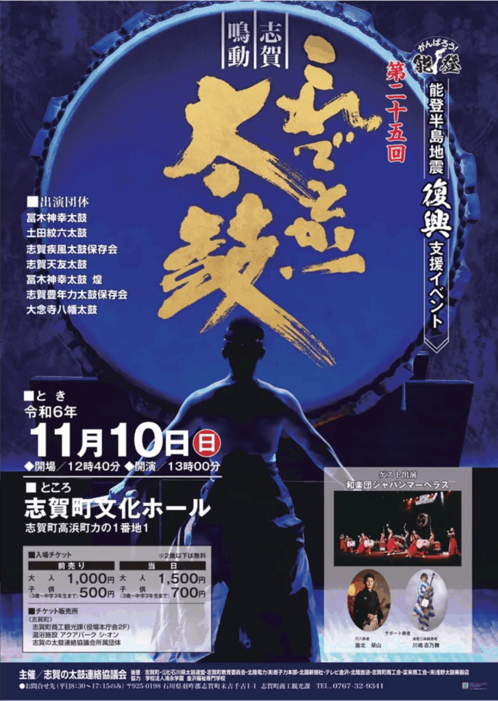 石川県金沢市にて創立50年を迎えた学校法人清永学園(所在:石川県金沢市 理事長:青木陽一良学校名:金沢福祉専門学校)は、能登半島地震で被災された石川県志賀町の皆さまの絆と元気を取り戻すため、2024年11月10日(日)志賀町文化ホールにて開催する「第25回 これでもか!太鼓」で、福岡県を拠点とする和太鼓を中心としたチーム「和楽団ジャパンマーベラス」「一般社団法人サムライアート」と協力し、復興応援として、「志賀町オリジナル太鼓楽曲」プロジェクトを実施します 。